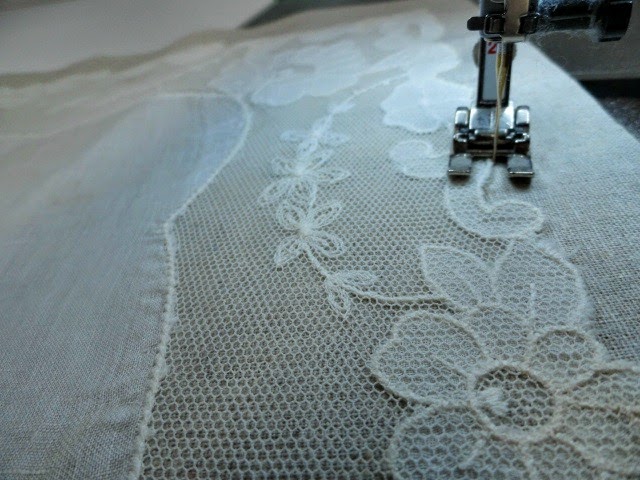 And remember the Vintage Hankie Quilt I mentioned in that same post? Well, that is now assembled and ready to go out for quilting as soon as I find the perfect backing fabric. I painstakingly stitched each hankie to a background of Essex Linen in Natural, using a narrow zigzag stitch and matching Aurifil 50wt thread.